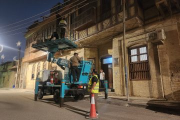 بطلب من مركزنا … بلدية البصرة تزين محلة الباشا بمصابيح رمضان